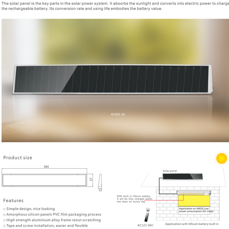 اللوحة الشمسية هي الأجزاء الرئيسية في نظام الطاقة الشمسية. تمتص أشعة الشمس وتحولها إلى طاقة كهربائية لشحن البطارية القابلة لإعادة الشحن. معدل التحويل واستخدام الحياة يجسد قيمة البطارية.