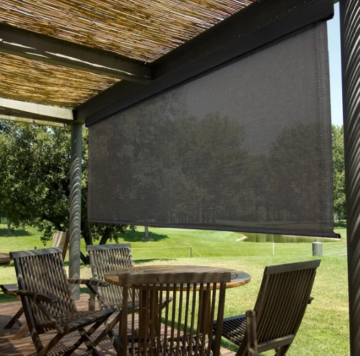 نسيج الشاشة عالي الأداء يقوم بتصفية الأشعة فوق البنفسجية ويتيح لك الاستمتاع بالمنظر. رائع لمنع السفر أو الحرارة الشمسية الثابتة. يدويًا أو مزودًا بالنوافذ أو المناطق المفتوحة.